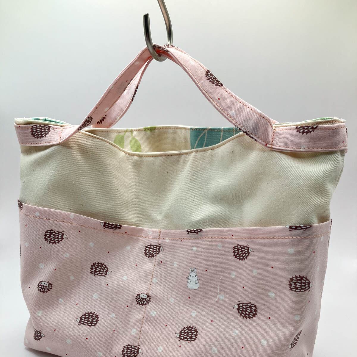 持ち手は外側にベルトのように付いているので、必要な時にサッと取り出せます。